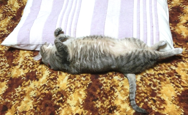 かなり慣れてきてお腹出して熟睡出来るようになったトタンです ↓
