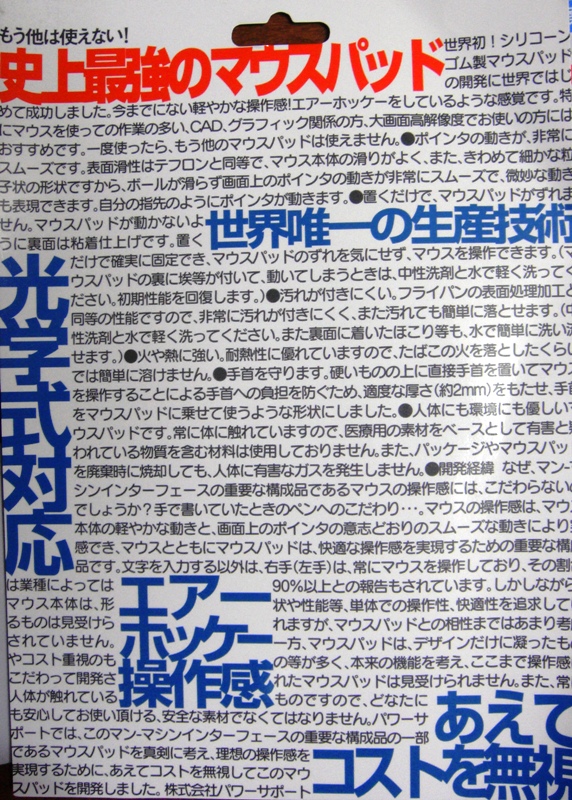 マウスパッドに入っていた台紙にそこんとこがちゃんと?説明!!