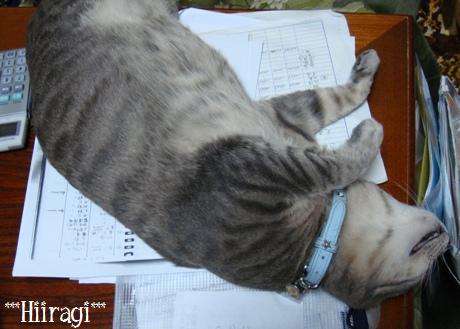 なぜか、机の上・・・しかも書類の上が大好き
