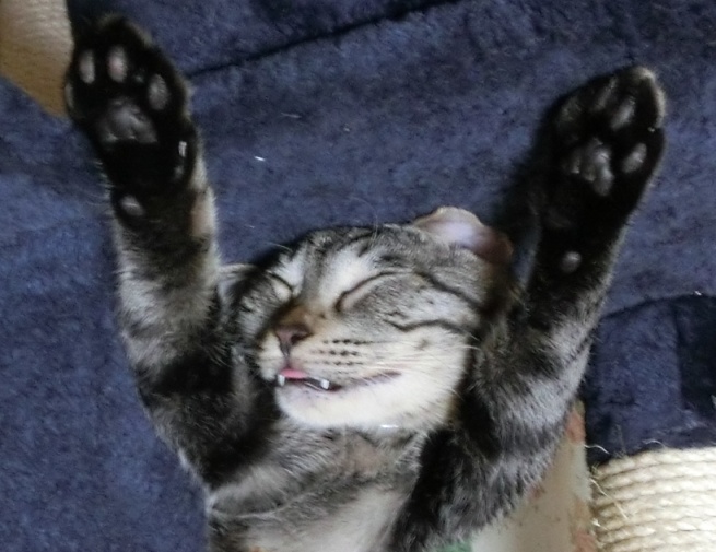 でもね、バンザイして寝ると背骨が伸びて気持ちがいいんですよ・・・。