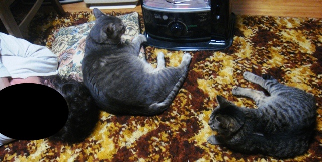 そしてストーブ前では、